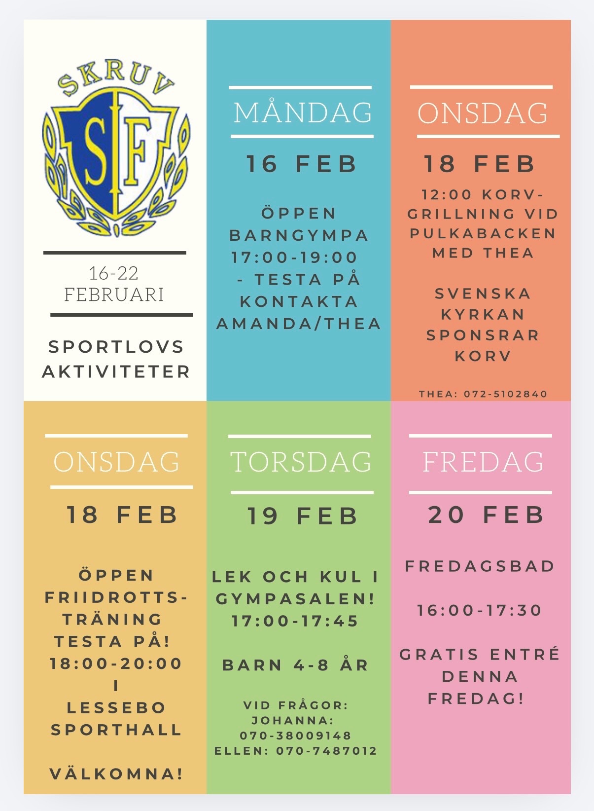 Häng med oss på sportlovet! Testa på våra aktiviteter. Allt är gratis för barn under 18 år.