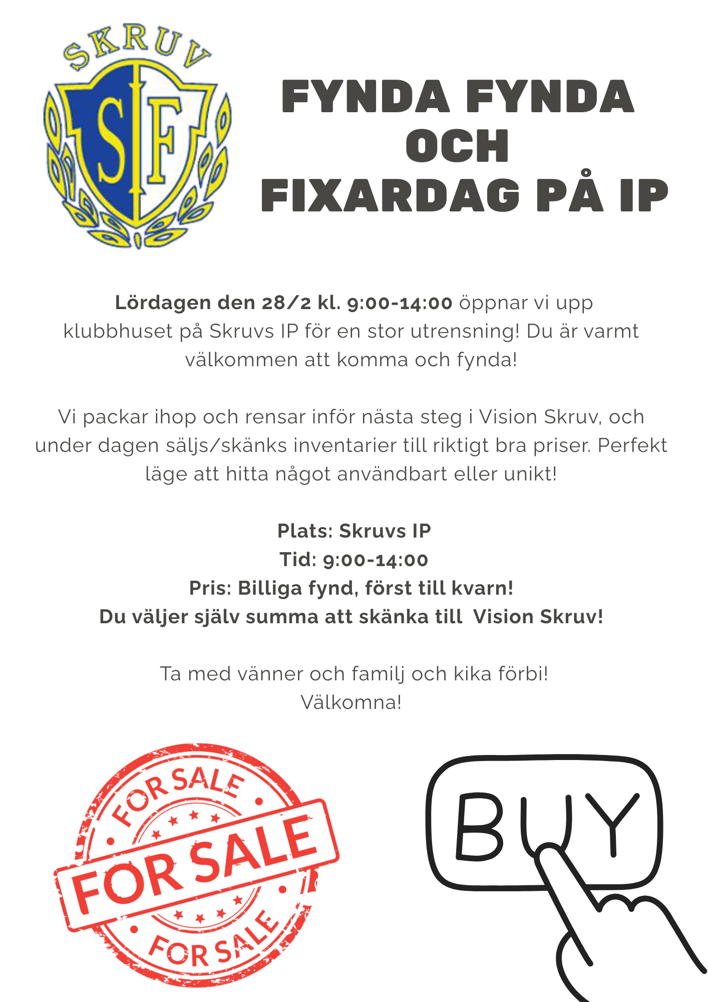 klubbhuset på Skruvs IP för en stor utrensning! Du är varmt