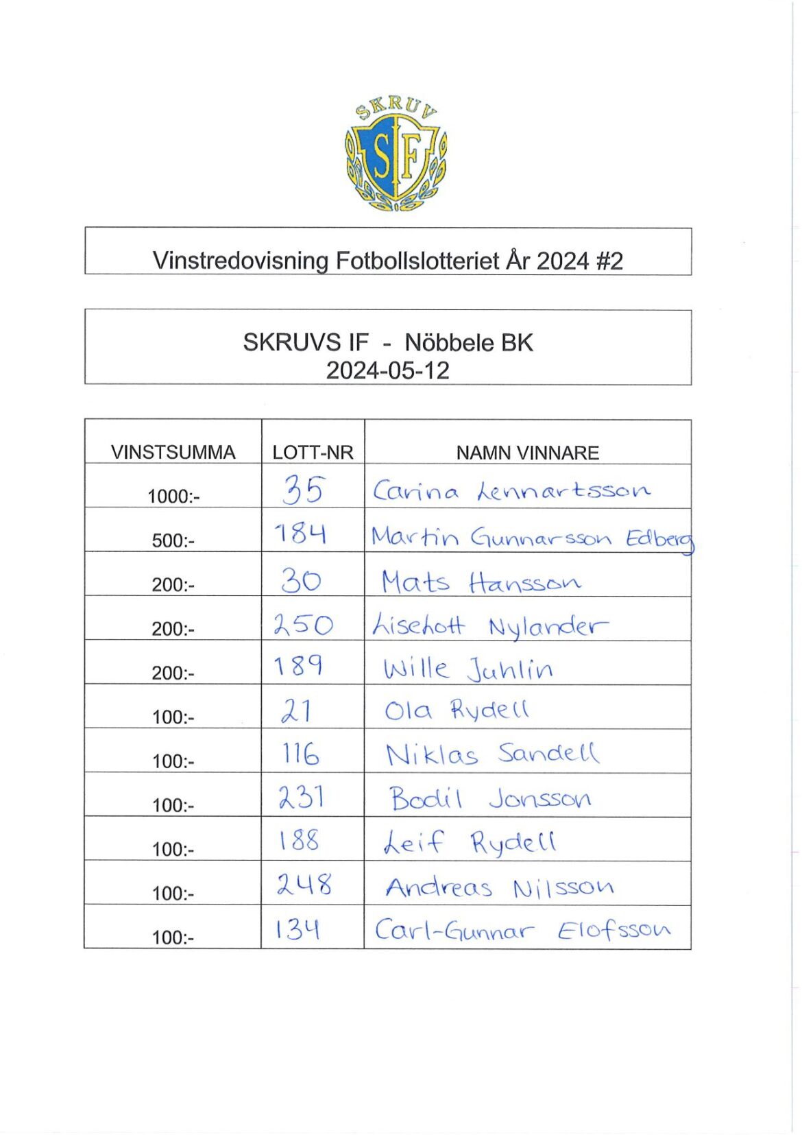 Under söndagens hemmamatch mot Åryd IK så hade vi den första dragningen i årets fotbollslotteri. Ett stort grattis till alla vinnare!