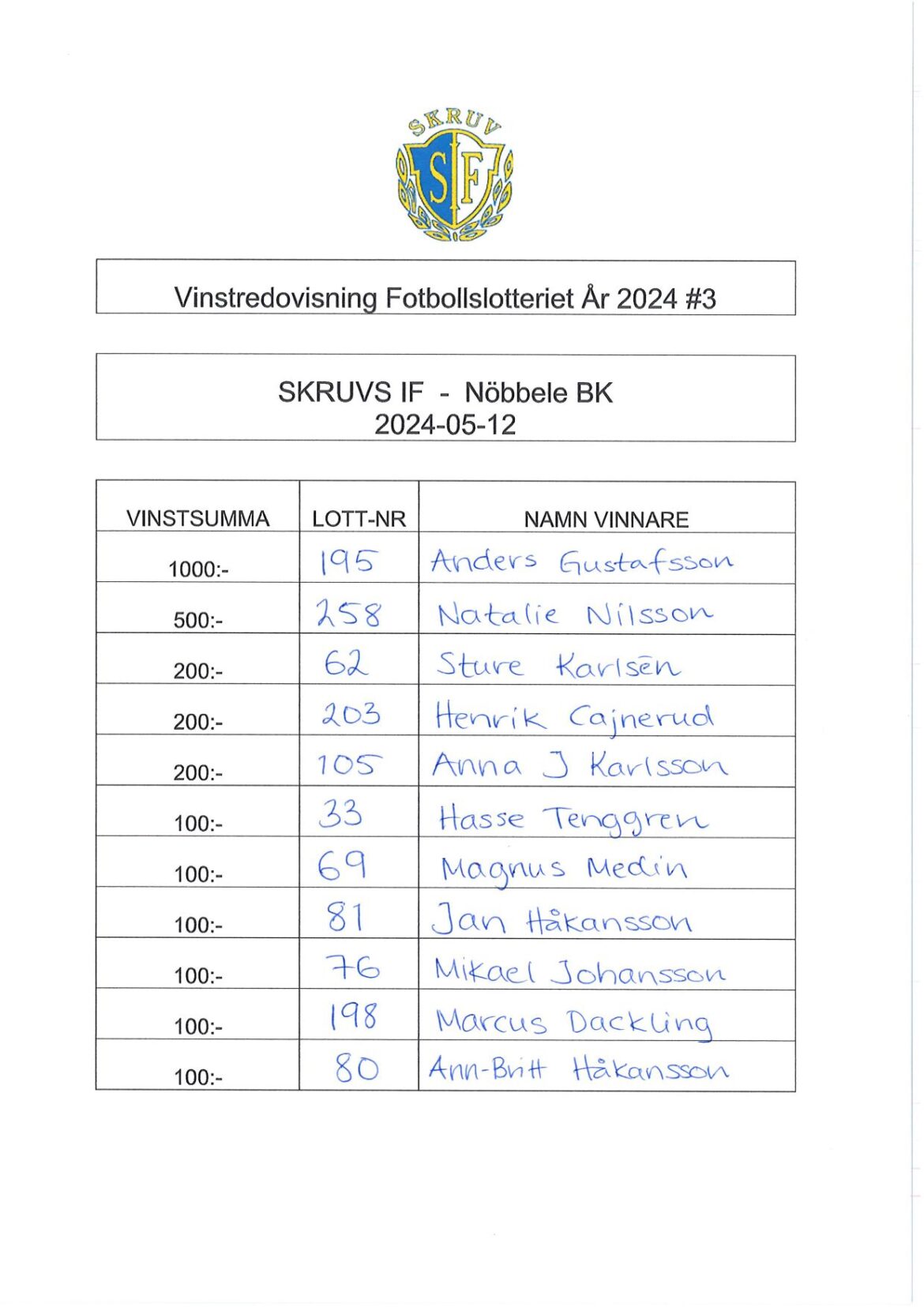 Under gårdagens hemmamatch mot Nöbbele BK så hade vi den tredje dragningen i årets fotbollslotteri. Ett stort grattis till alla vinnare!