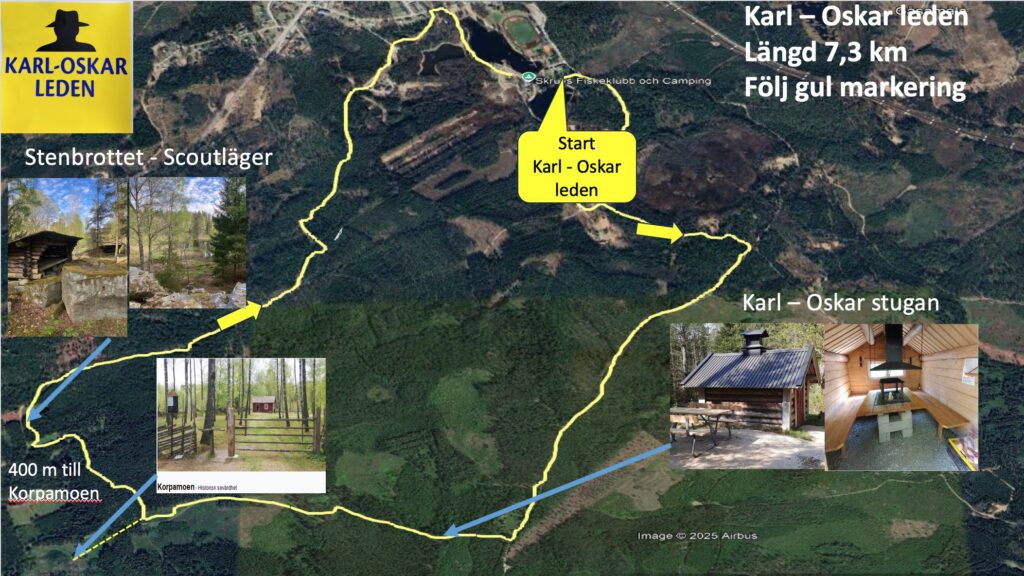 Hur lederna sträcker sig ser ni i bilderna nedan. Det är enkelt att hitta, det är bara att följa skyltningen längs vägen. Karl-Oskarleden har gula skyltar och Kristinaleden har blå skyltar: